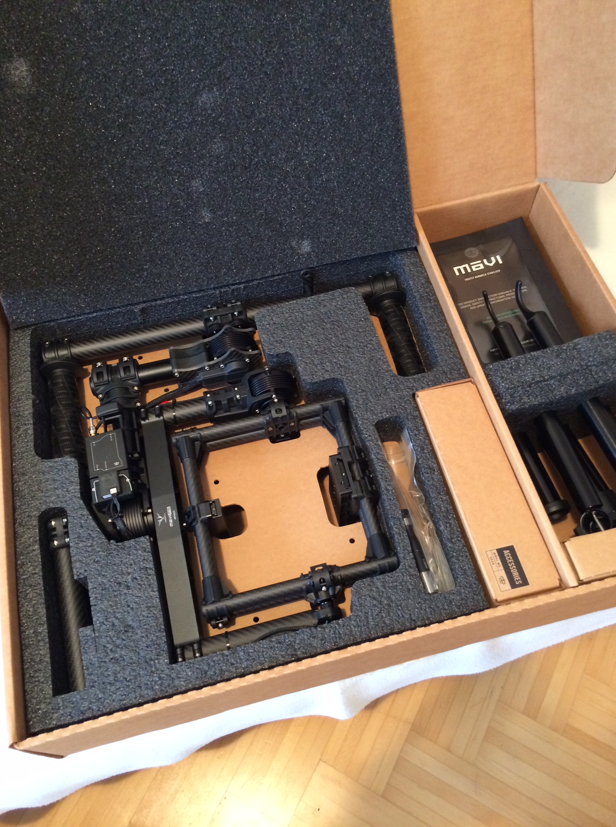 (Updated April 25, 2014) Today my new toy - the 'MōVI M5' from FREEFLYSYSTEMS - arrived at my holiday location in Vienna, Austria (only 5days after the final payment was transferred). It came in a huge box, bigger than expected. Ok, it comes with the additional Controller (for dual operator mode) and DP4 HD monitor... can't wait to open the box. Will update this blog within the next hours and share my unboxing experience, detailed info about the foam rubber measurements to find the right size for the transport case, my personal user experience comparing it to the MōVI M10 - which I have used a lot in Doha these days. I'll also publish all details about the additional costs when importing it to Europe (customs clearance, VAT, shipping). Enjoy reading.